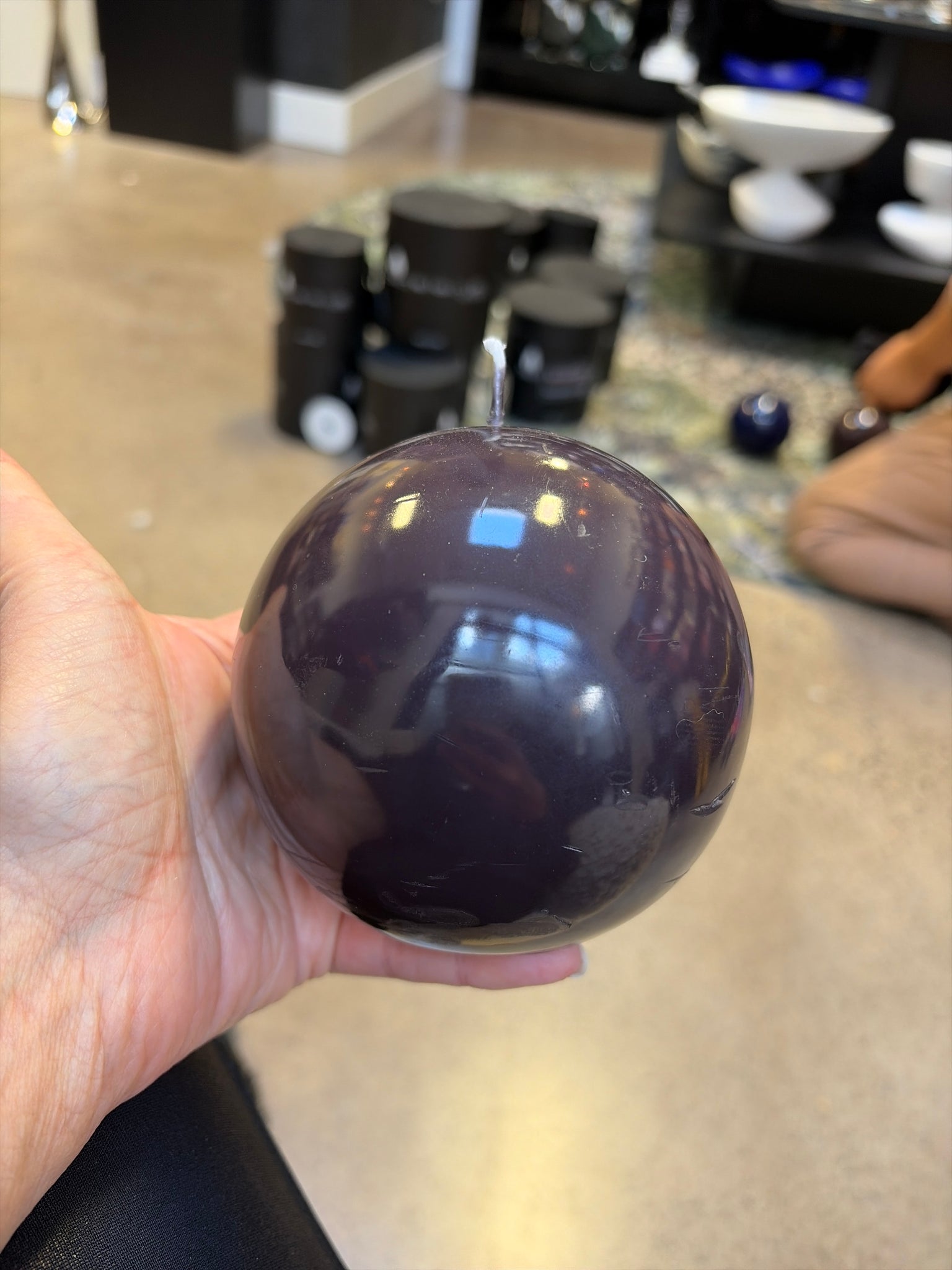 Burn time for small candle is 44 hours. The extremely reflective finish of these ball candles is achieved through a handmade process by Cereria Graziani’s artisans. Each candle is initially dyed by immersing it in a special wax bath for 24 hours. The candle is then immersed in a natural cellulose-based varnish which takes up to six days to dry. Graziani doesn't use ovens to accelerate this process; rather, the company believes that a slow and natural drying system guarantees an excellent product.